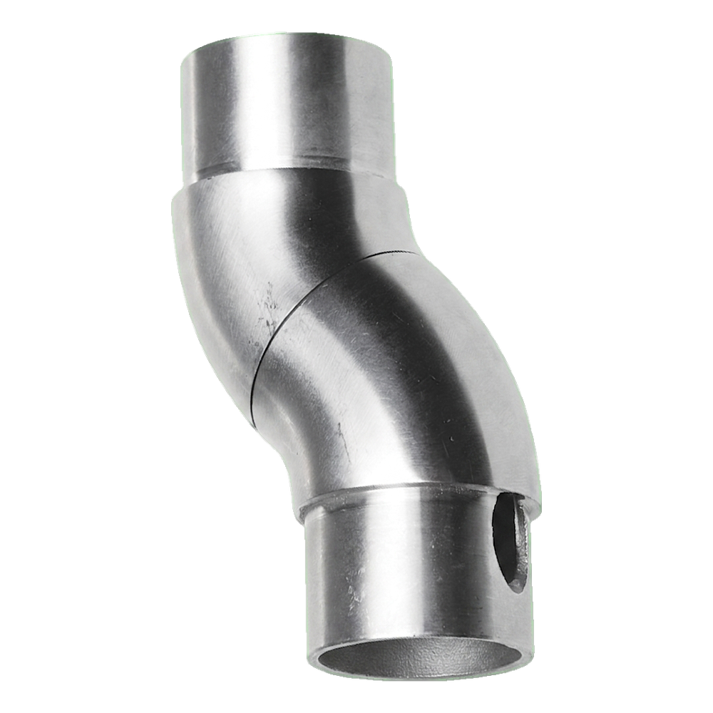 Ο αγκώνας περιστρεφόμενος είναι βασικό στοιχείο στην κατασκευή κιγκλιδωμάτων από ανοξείδωτο χάλυβα παντού όπου υπάρχει ανάγκη σύνδεσης σωλήνων υπό μεταβλητή γωνία. Χάρη στην άρθρωτη κατασκευή εξαλείφει την ανάγκη κοπής και συγκόλλησης προφίλ υπό ατομική γωνία — αρκεί να ρυθμίσετε την επιθυμητή γωνία και να κολλήσετε το στοιχείο. Η τεχνολογία αναερόβιας κόλλησης επιτρέπει αισθητική, αόρατη σύνδεση χωρίς υπερθέρμανση του υλικού και αποχρωματισμούς χαρακτηριστικούς της συγκόλλησης, γεγονός που μεταφράζεται άμεσα σε υψηλότερη οπτική ποιότητα του κιγκλιδώματος και μικρότερο χρόνο εργασιών φινιρίσματος.