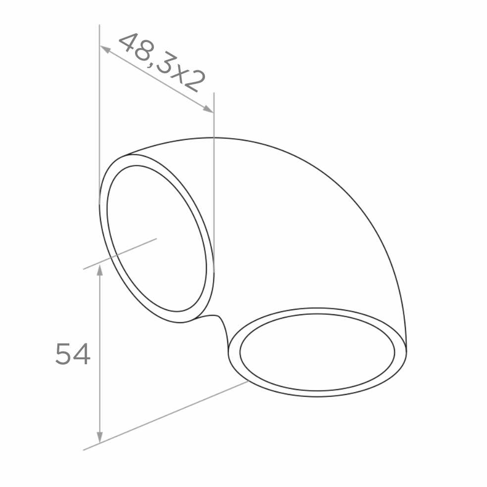 Το αγκώνιο προορίζεται για συγκόλληση — μετά τη συναρμολόγηση αποτελεί αναπόσπαστο, αδιαίρετο μέρος της κατασκευής της κουπαστής. Η σατινέ επιφάνεια συνδυάζεται αρμονικά με τα υπόλοιπα στοιχεία του συστήματος από ανοξείδωτο χάλυβα, ενώ οι λείες μεταβάσεις διευκολύνουν την μεταγενέστερη τροχιά και στίλβωση της συγκόλλησης.