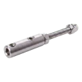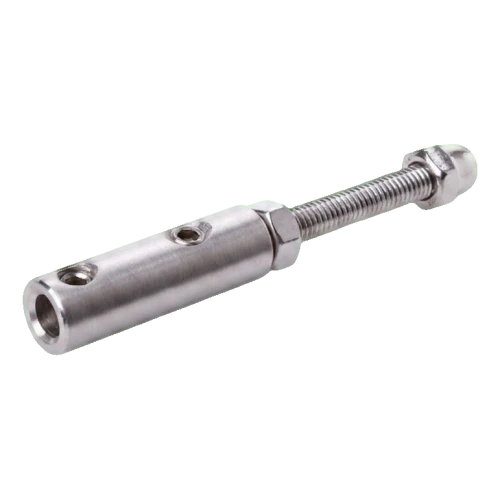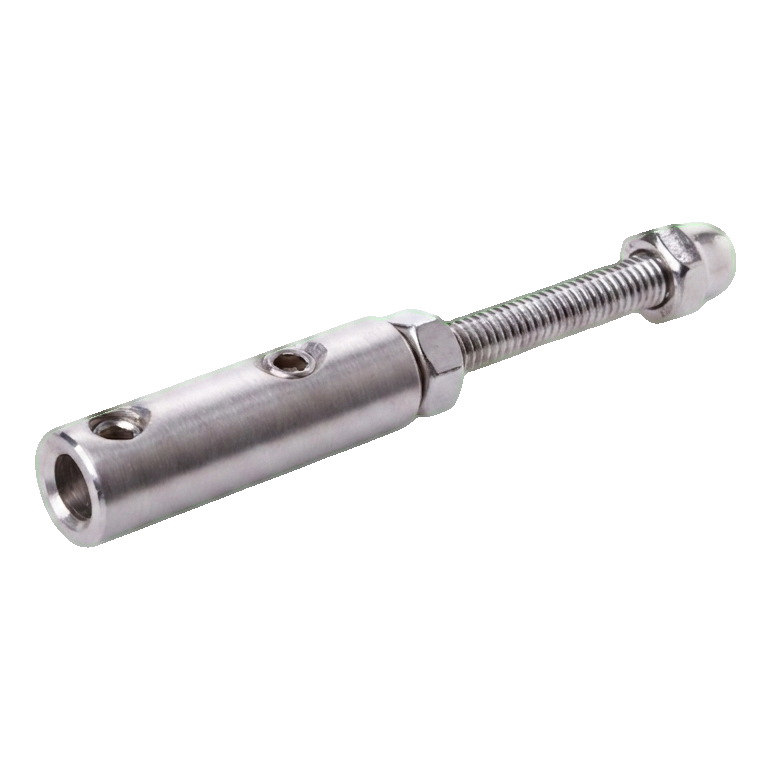 Κατασκευασμένη εξ ολοκλήρου από ανοξείδωτο χάλυβα AISI 304 με σατινέ φινίρισμα, η βάση εξασφαλίζει διαρκή αντοχή στη διάβρωση και αισθητικά ματ εμφάνιση που ταιριάζει τέλεια με σύγχρονα κιγκλιδώματα. Η εγκατάσταση γίνεται με βίδωμα μέσω σπειρωματικού στελέχους M6×50 στο υπόστρωμα, και το σύρμα ασφαλίζεται από βίδες σύσφιξης με σπείρωμα M5, επιτρέποντας ακριβή ρύθμιση και σίγουρο κράτημα του συρματόσχοινου.