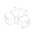 Η γωνία 90° αποτελεί βασικό κατασκευαστικό στοιχείο στο σύστημα γυάλινων κουπαστών που βασίζεται σε τετράγωνα προφίλ 40x40 mm. Επιτρέπει τη δημιουργία γωνιών, αλλαγών κατεύθυνσης της κουπαστής καθώς και συνδέσεων σε ορθή γωνία. Το σατινέ φινίρισμα επιφάνειας εναρμονίζεται με άλλα στοιχεία του συστήματος κουπαστών από ανοξείδωτο χάλυβα, εξασφαλίζοντας συνεκτική και κομψή εμφάνιση σε όλη την κατασκευή.
