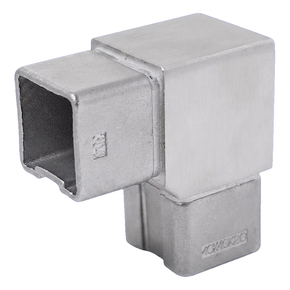 Γωνία 90° για προφίλ κουπαστής 40x40 mm – ανοξείδωτος χάλυβας AISI304, σατινέ
