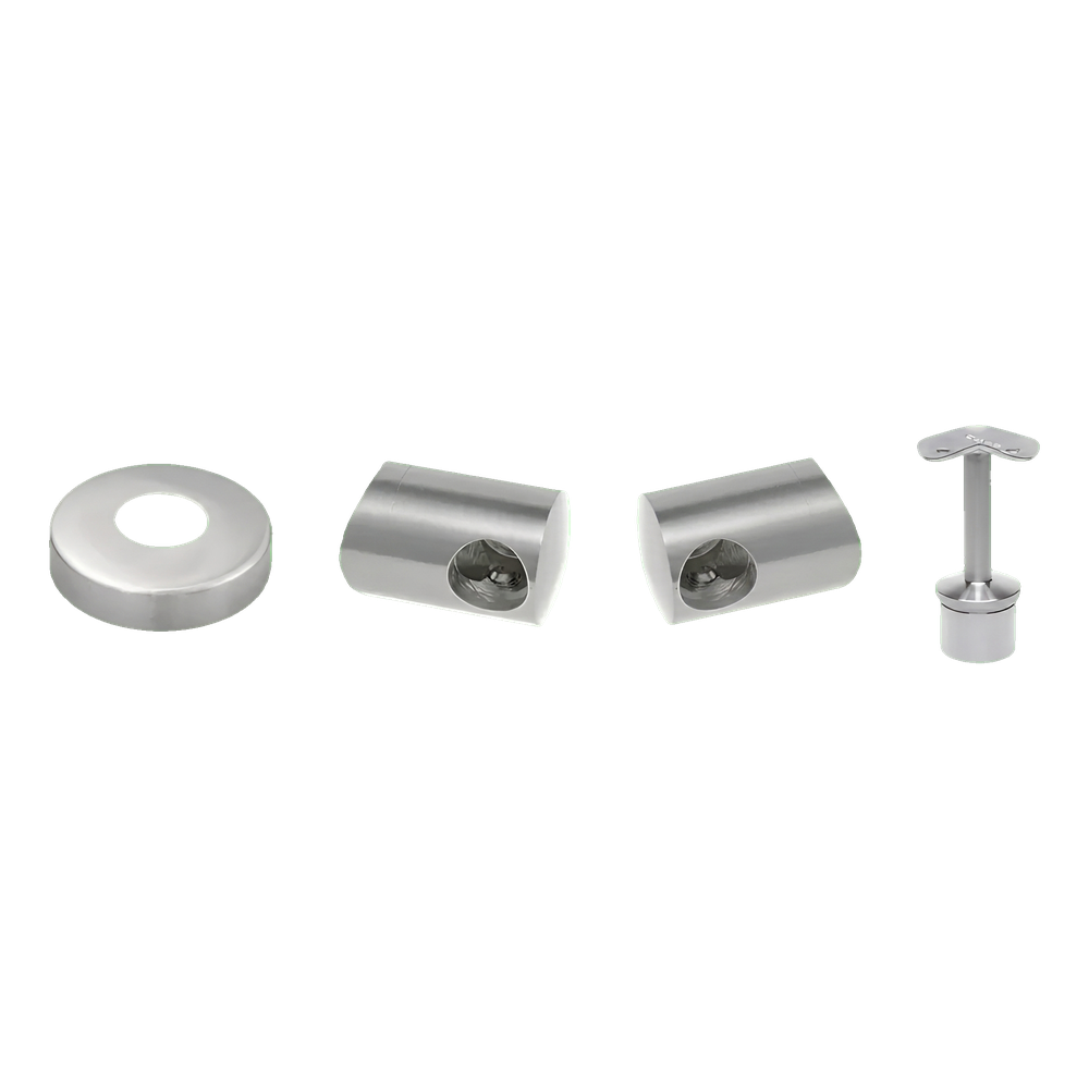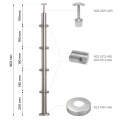 Οι συνδετήρες και τα στηρίγματα του κιγκλιδώματος που περιλαμβάνονται στο σετ δεν είναι μόνιμα εγκατεστημένα — συνιστάται η συγκόλληση τους με αναερόβια κόλλα για ανοξείδωτο ατσάλι. Με αυτόν τον τρόπο ο εγκαταστάτης αποκτά τη δυνατότητα ρύθμισης και προσαρμογής του στύλου στις συνθήκες του εργοταξίου, και εάν χρειαστεί — κοψίματος του στύλου, π.χ. λόγω ανομοιομορφίας του δαπέδου.