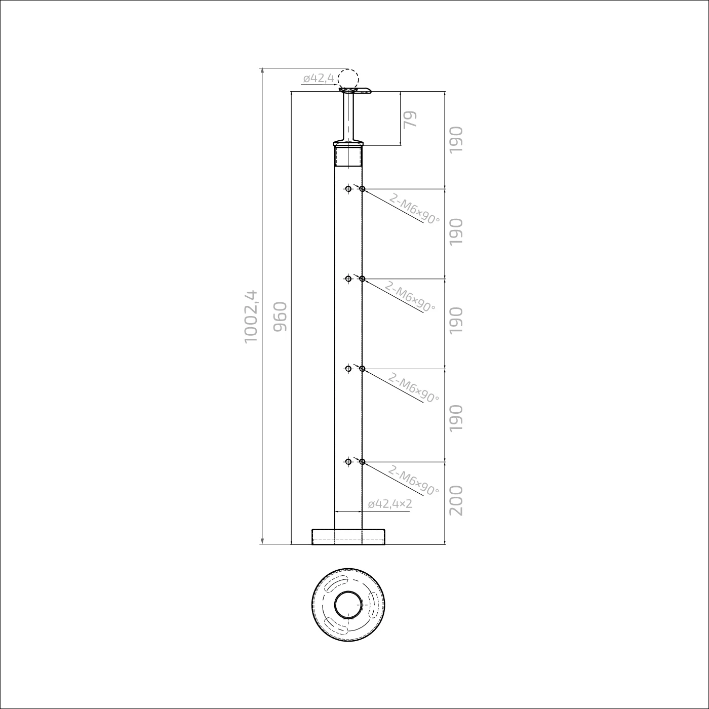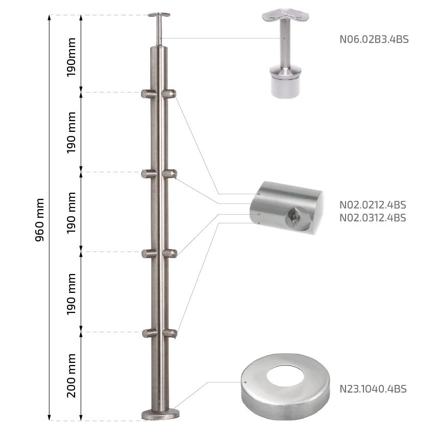 Γωνιακός στύλος κιγκλιδώματος PSG από ανοξείδωτο ατσάλι AISI 304 ø 42,4 mm Y960 – εγκατάσταση σε δάπεδο