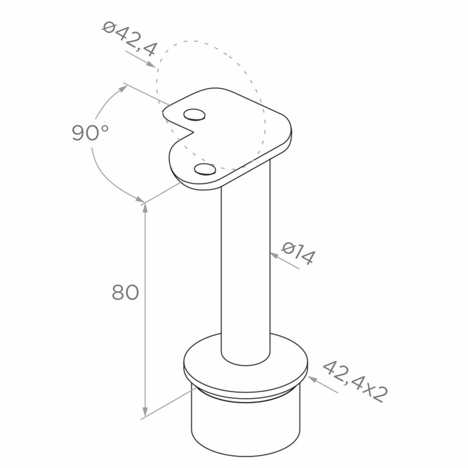 - Διάμετρος βάσης (ταιριάζει στον σωλήνα): ø 42,4 × 2 mm