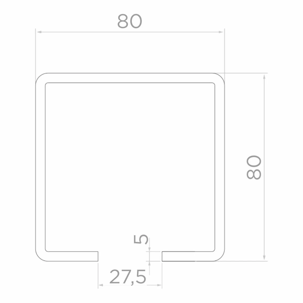- Εξωτερική διατομή: 80 × 80 mm