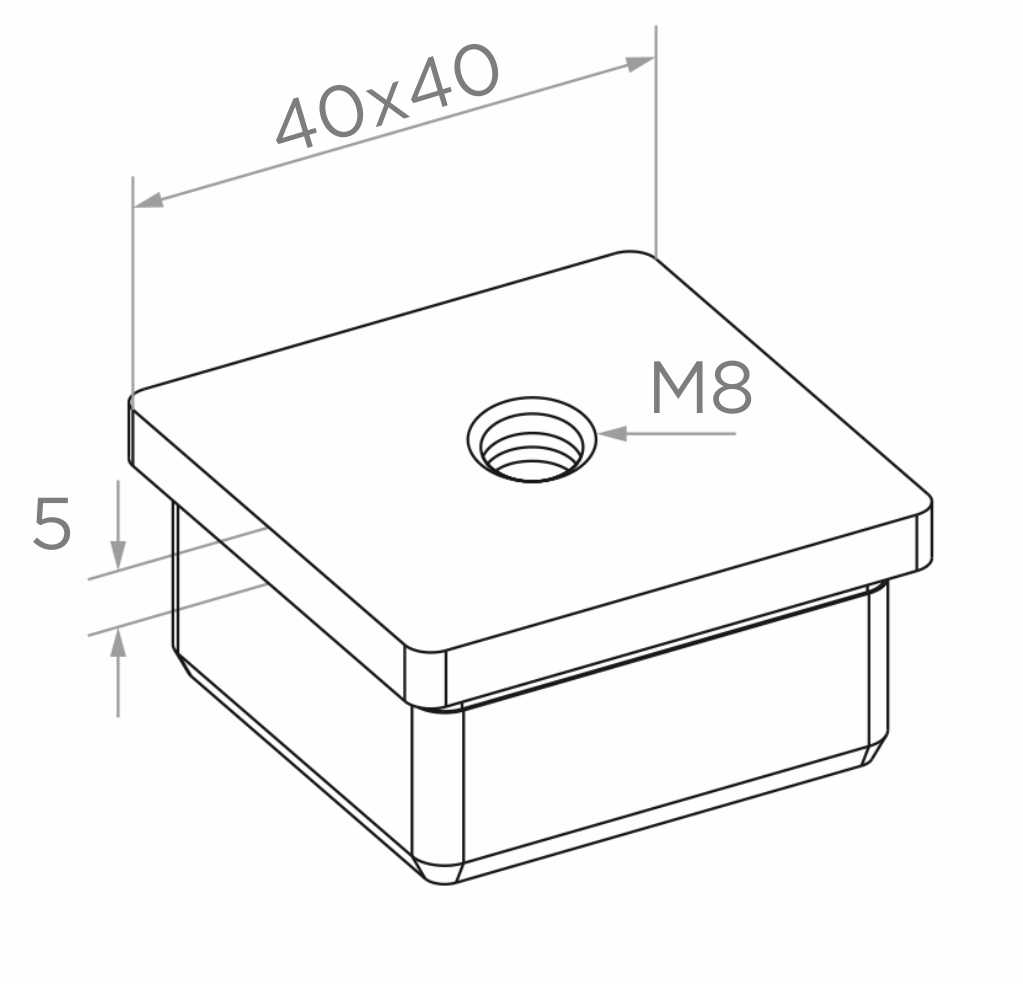 Επίπεδο τάπα εισαγωγής για προφίλ 40x40 mm με σπείρωμα M8, AISI 304 σατινέ