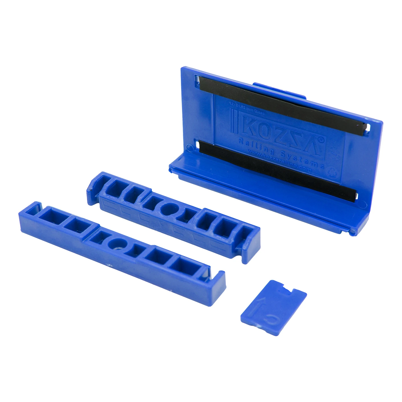Το κιτ περιλαμβάνει 15 σετ πλαστικών εξαρτημάτων τοποθέτησης, τα οποία κατανέμονται ομοιόμορφα σε όλο το μήκος του προφίλ. Κάθε σετ αποτελείται από μια βάση με σημάνσεις A και B και μια διαχωριστική ράβδο, διευκολύνοντας τη σωστή τοποθέτηση και εξασφαλίζοντας επαναληψιμότητα σε κάθε εγκατάσταση. Τα εξαρτήματα κατασκευάζονται από ανθεκτικό πλαστικό — είναι ανθεκτικά στις παραμορφώσεις και εγγυώνται σταθερή συγκράτηση του υαλοπίνακα τόσο από την πλευρά όσο και από την κορυφή του προφίλ.