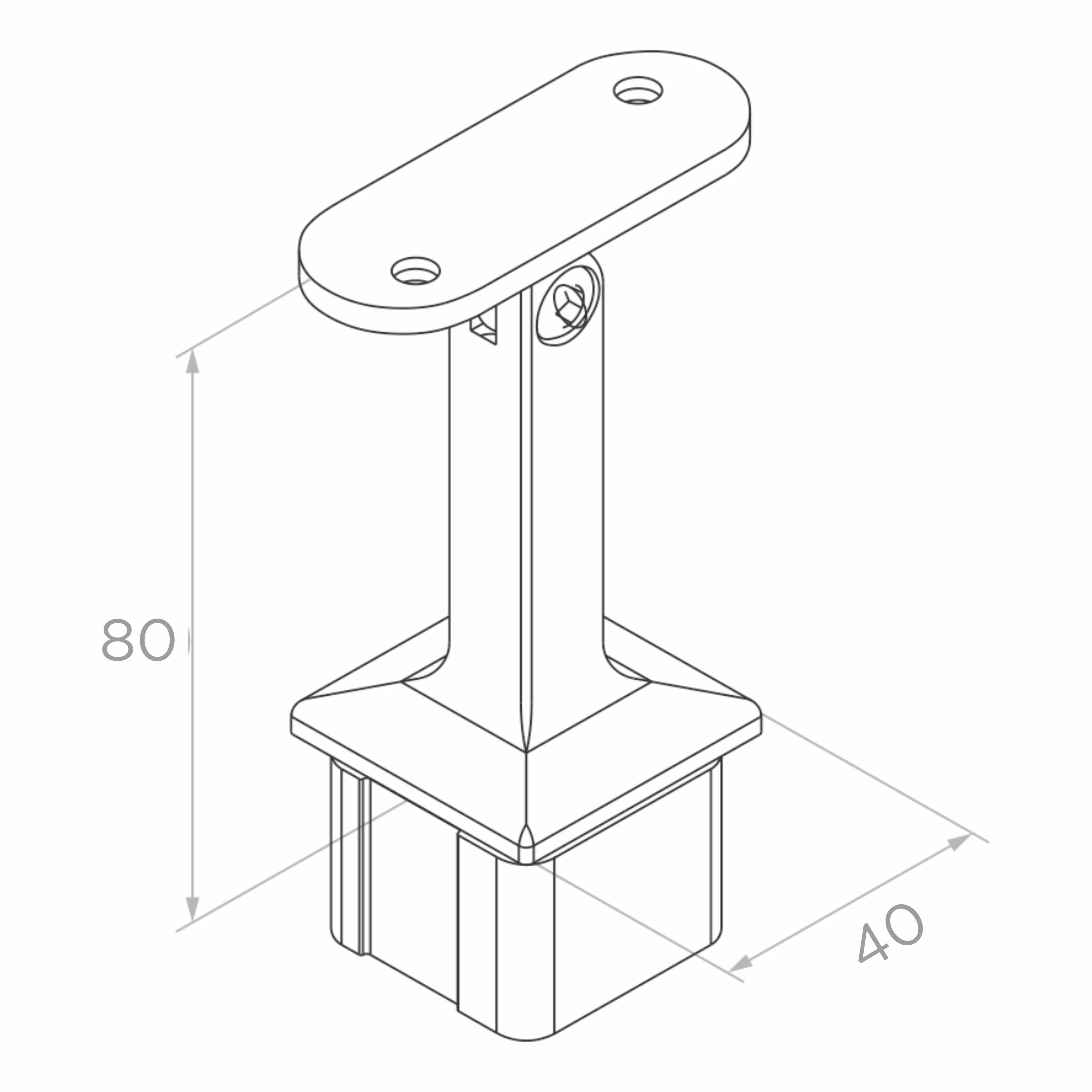 Κολώνα κιγκλιδώματος τελική αριστερή 40×40 mm από ανοξείδωτο ατσάλι – 2 στηρίγματα για γυαλί