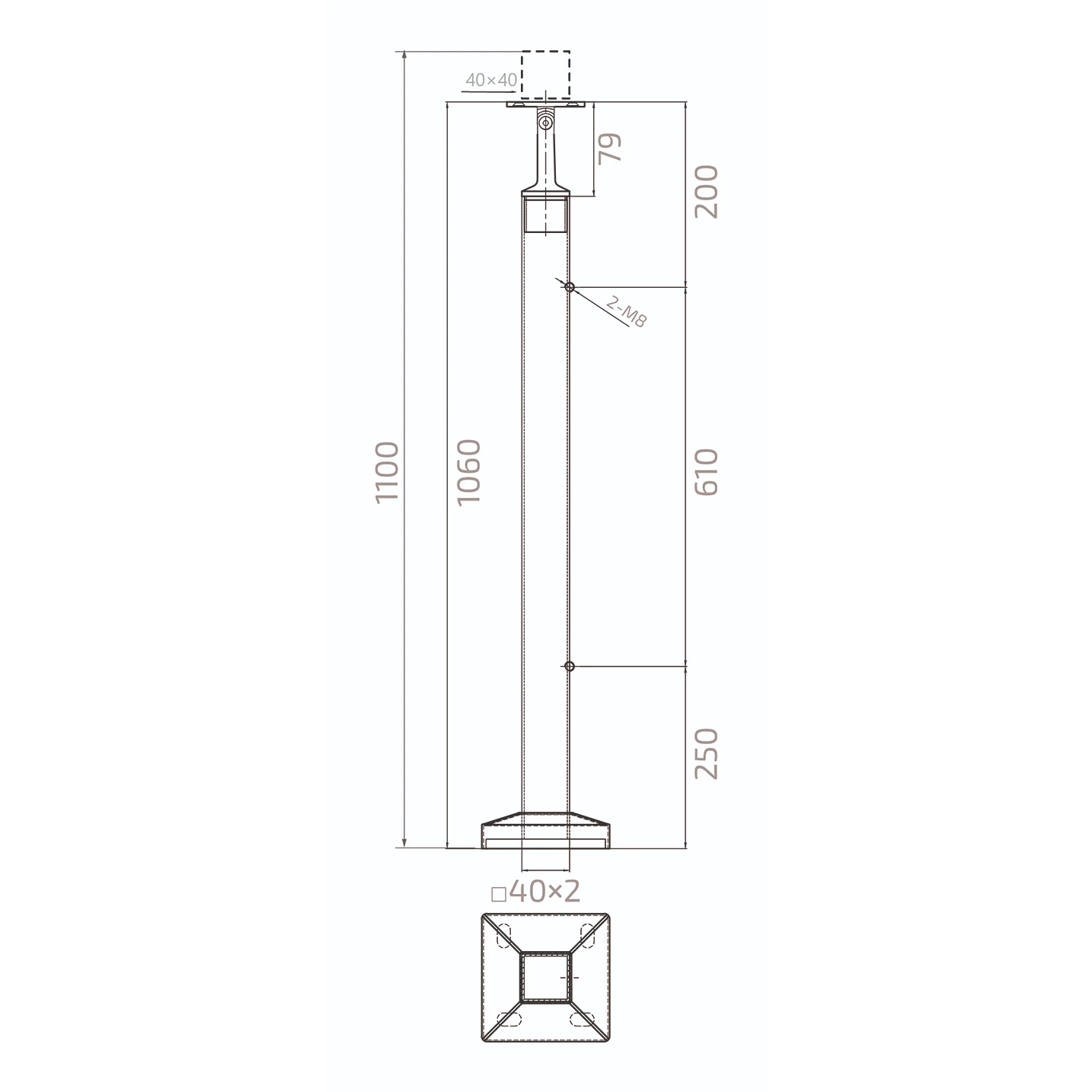 - Κολώνα από ανοξείδωτο ατσάλι 40×40×1060 mm