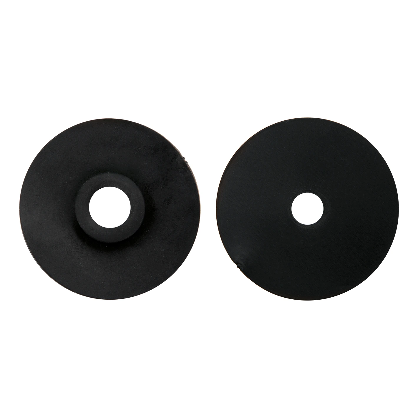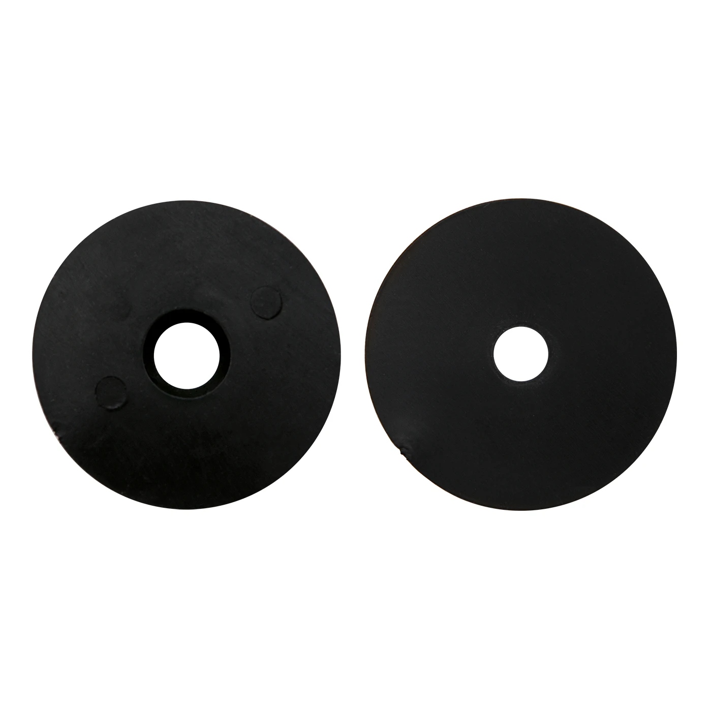 Σετ μαύρων λάστιχων συγκράτησης EPDM για σημειακές αρθρώσεις (rotul) διαμέτρου 50 mm. Το σετ αποτελείται από δύο τεμάχια — επίπεδο λάστιχο και λάστιχο με φλάντζα — που εξασφαλίζουν σταθερή και διαρκή ακινητοποίηση του υαλοπίνακα σε κιγκλιδώματα από ανοξείδωτο χάλυβα.