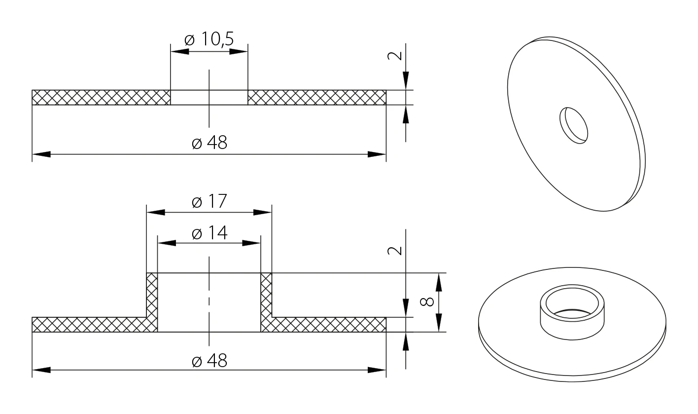 - Συνολικό ύψος με φλάντζα: 8 mm
