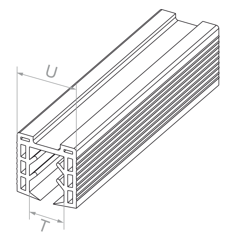 - Διατομή προφίλ (U): 24 × 24 mm