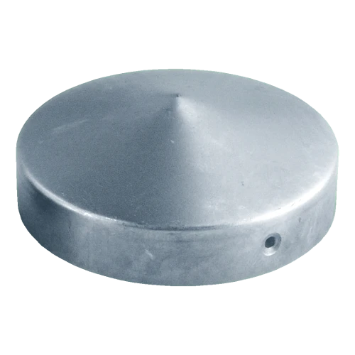 Στρογγυλό γαλβανισμένο χαλύβδινο στέγαστρο που προορίζεται για τοποθέτηση σε στύλους φράχτη διαμέτρου Φ 48 mm. Προστατεύει αποτελεσματικά το άκρο του στύλου από βροχή, χιόνι και άλλους ατμοσφαιρικούς παράγοντες, αποτρέποντας τη διάβρωση και την πρόωρη φθορά. Το κωνοειδές σχήμα του άνω μέρους εξασφαλίζει ελεύθερη απορροή του νερού, εξαλείφοντας τον κίνδυνο συσσώρευσης υγρασίας στην κορυφή του στύλου.