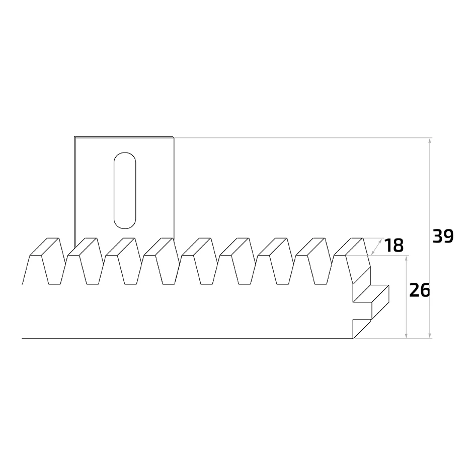 - Συνολικό ύψος: 39 mm (οδόντωση 26 mm + βάση)