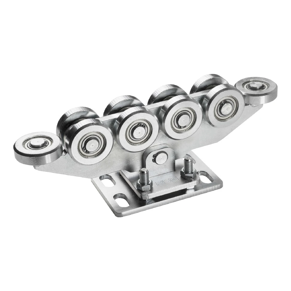 Τροχοφόρο σχεδιασμένο για βαριές αυτοφερόμενες συρόμενες πύλες. Εξοπλισμένο με 10 ατσάλινους τροχούς (εκ των οποίων δύο οριζόντιοι), που εξασφαλίζουν ομαλή και αθόρυβη κίνηση ακόμα και υπό μεγάλο φορτίο. Αρθρωτή κατασκευή – το τροχοφόρο συνδέεται με τη βάση μέσω άξονα, χάρη στον οποίο προσαρμόζεται αυτόματα στο προφίλ της ράγας.
