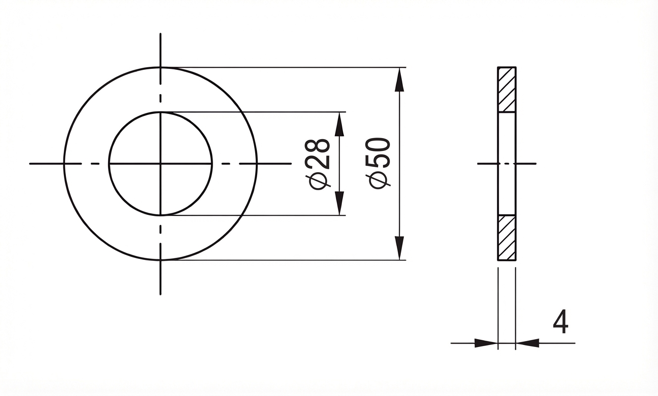 - Πρότυπο: DIN 125 (εναλλακτικό ISO 7089/7090)