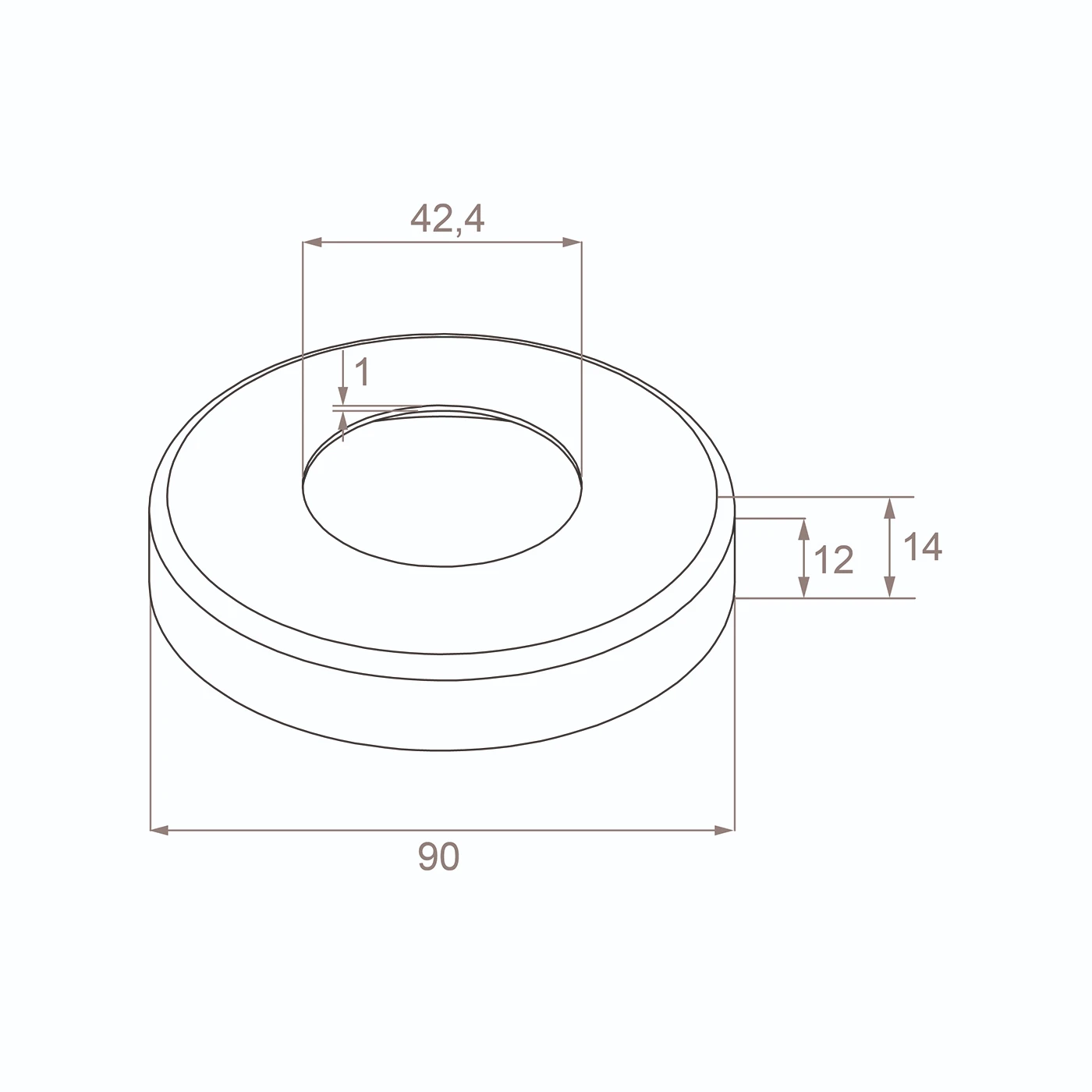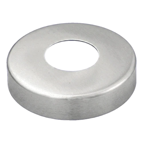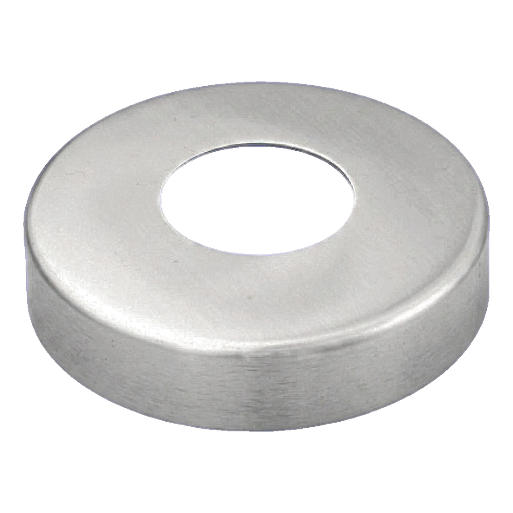 Ροζέτα κάλυψης από ανοξείδωτο χάλυβα AISI 304 προορισμένη για την αισθητική κάλυψη οπών τοποθέτησης γύρω από σωλήνες διαμέτρου 42,4 mm σε κιγκλιδώματα και ανοξείδωτες κατασκευές. Το σατινέ φινίρισμα επιφανείας εξασφαλίζει κομψή, συγκρατημένη εμφάνιση και ταυτόχρονα καλύπτει αποτελεσματικά τις ατέλειες του σημείου διέλευσης του στύλου από το φέρον στοιχείο.
