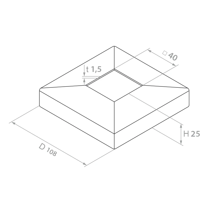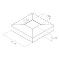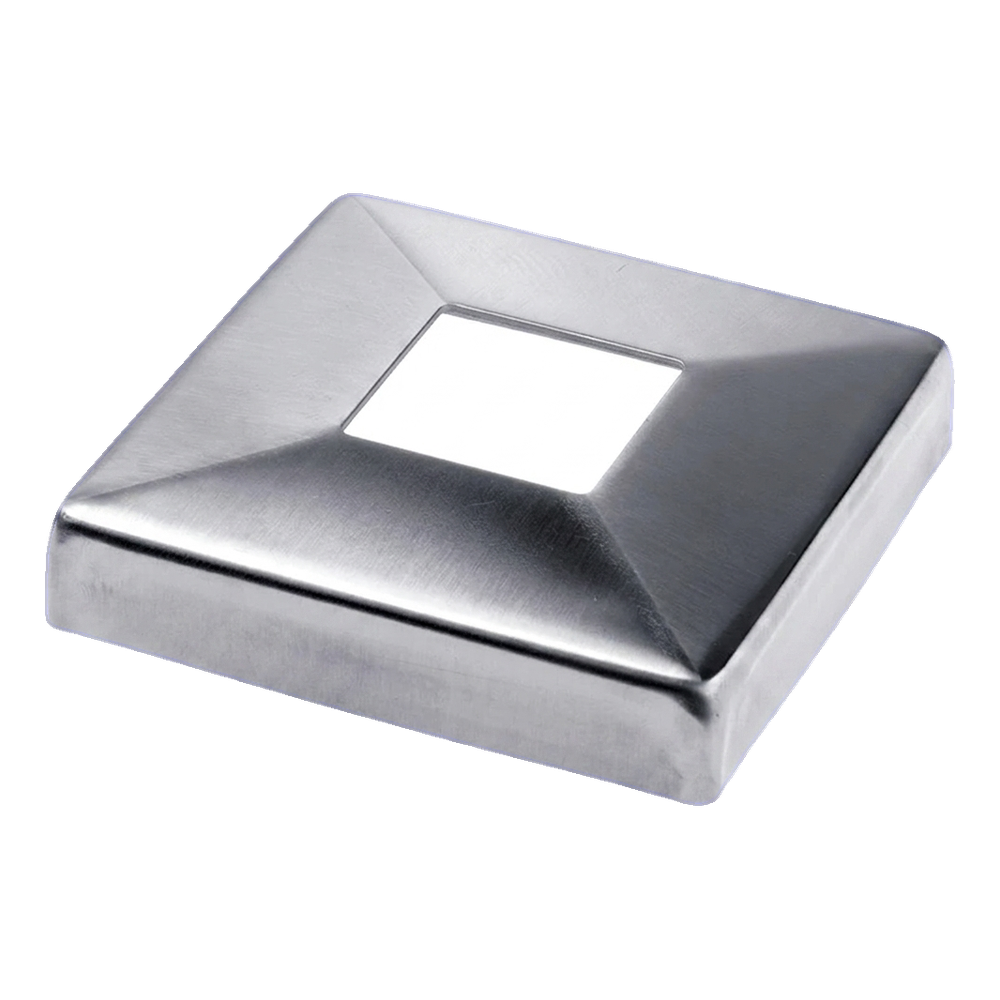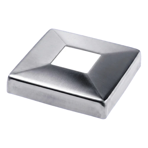 Τετράγωνη ροζέτα κάλυψης προορισμένη για στυλοβάτες κιγκλιδωμάτων με διατομή 40×40 mm. Κατασκευασμένη από ανοξείδωτο χάλυβα AISI 316 με σατινέ φινίρισμα, εξασφαλίζει κομψή και ανθεκτική κάλυψη των σημείων συναρμογής, βάσεων προφίλ και τεχνικών οπών. Χάρη στη χρήση χάλυβα βαθμού 316, η κάλυψη εγγυάται υψηλή αντοχή στη διάβρωση — ακόμα και σε περιβάλλοντα εκτεθειμένα σε επαφή με υγρασία και αλάτι, καθιστώντας την ιδανική λύση τόσο για εσωτερικούς όσο και για εξωτερικούς χώρους κτιρίων.