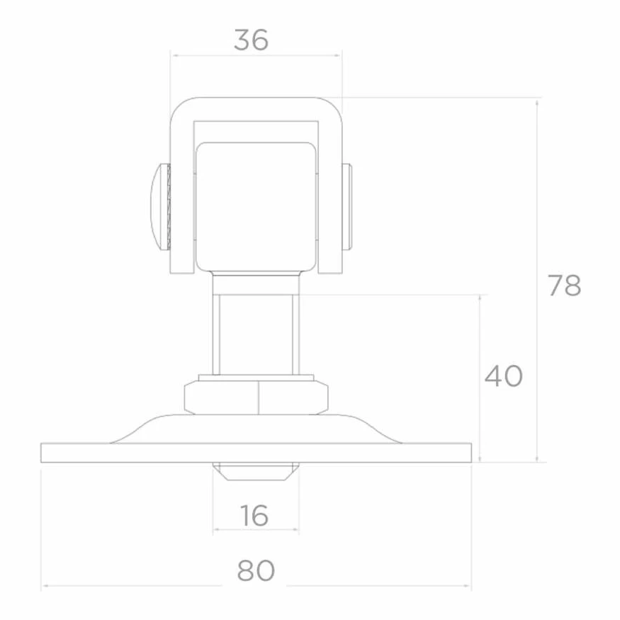 Η πλάκα διαστάσεων 80 × 80 mm με τέσσερις οπές στερέωσης επιτρέπει γρήγορη και σταθερή βίδωση στον στύλο της περίφραξης. Το πάχος πλάκας 3 mm εγγυάται επαρκή ακαμψία και αντοχή της σύνδεσης. Η κατασκευή με περιστρεφόμενο άγκιστρο εξασφαλίζει ομαλή λειτουργία του φύλλου της πύλης, ενώ η αντιδιαβρωτική επίστρωση ψευδαργύρου προστατεύει το εξάρτημα από τις καιρικές συνθήκες για πολλά χρόνια.