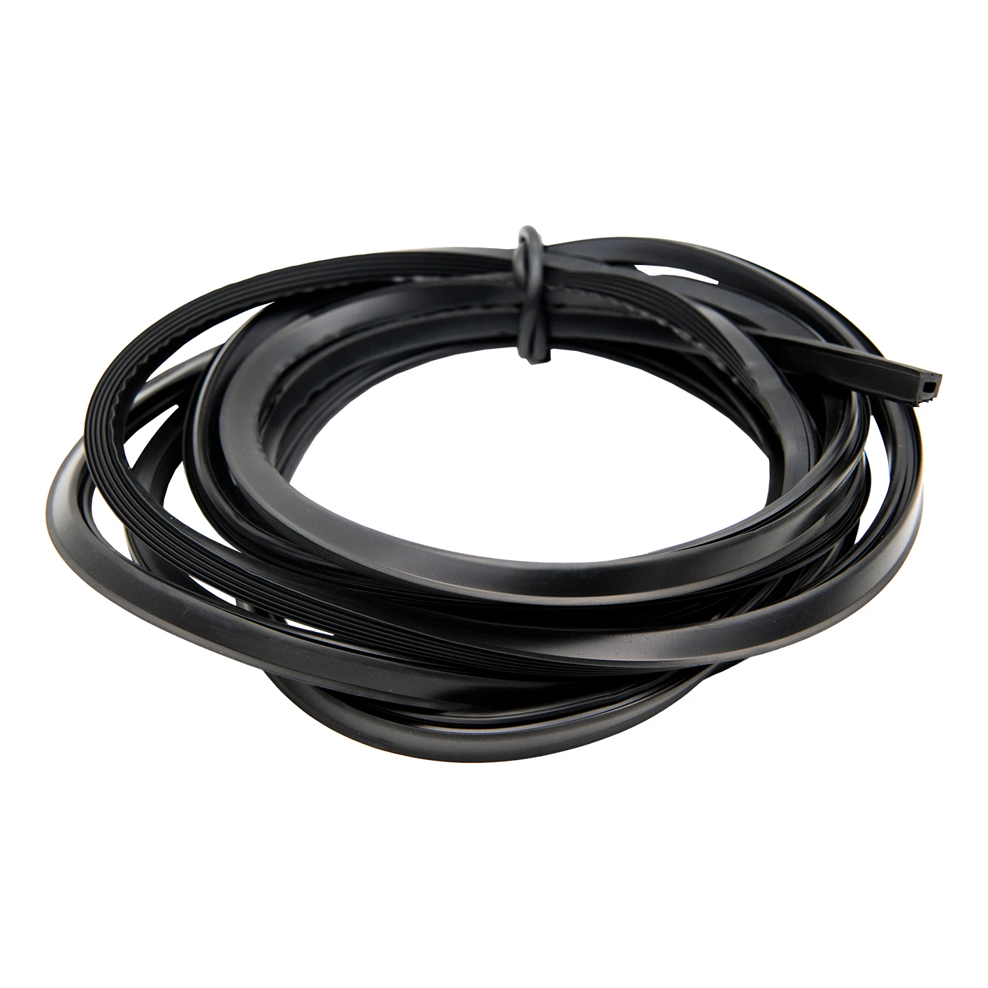 Το κιτ περιλαμβάνει δύο τύπους λαστιχένιων παρεμβυσμάτων σε μαύρο χρώμα, καθένα μήκους 5000 mm. Το μπροστινό και το πίσω παρέμβυσμα διαφέρουν ως προς το προφίλ διατομής — το πλατύτερο εξασφαλίζει πίεση και απόσβεση του υαλοπίνακα από την πλευρά του προφίλ, ενώ το στενότερο σταθεροποιεί τον υαλοπίνακα από την εξωτερική πλευρά. Και τα δύο παρεμβύσματα εξαλείφουν αποτελεσματικά τις δονήσεις και αντισταθμίζουν τις ανοχές διαστάσεων του γυαλιού.