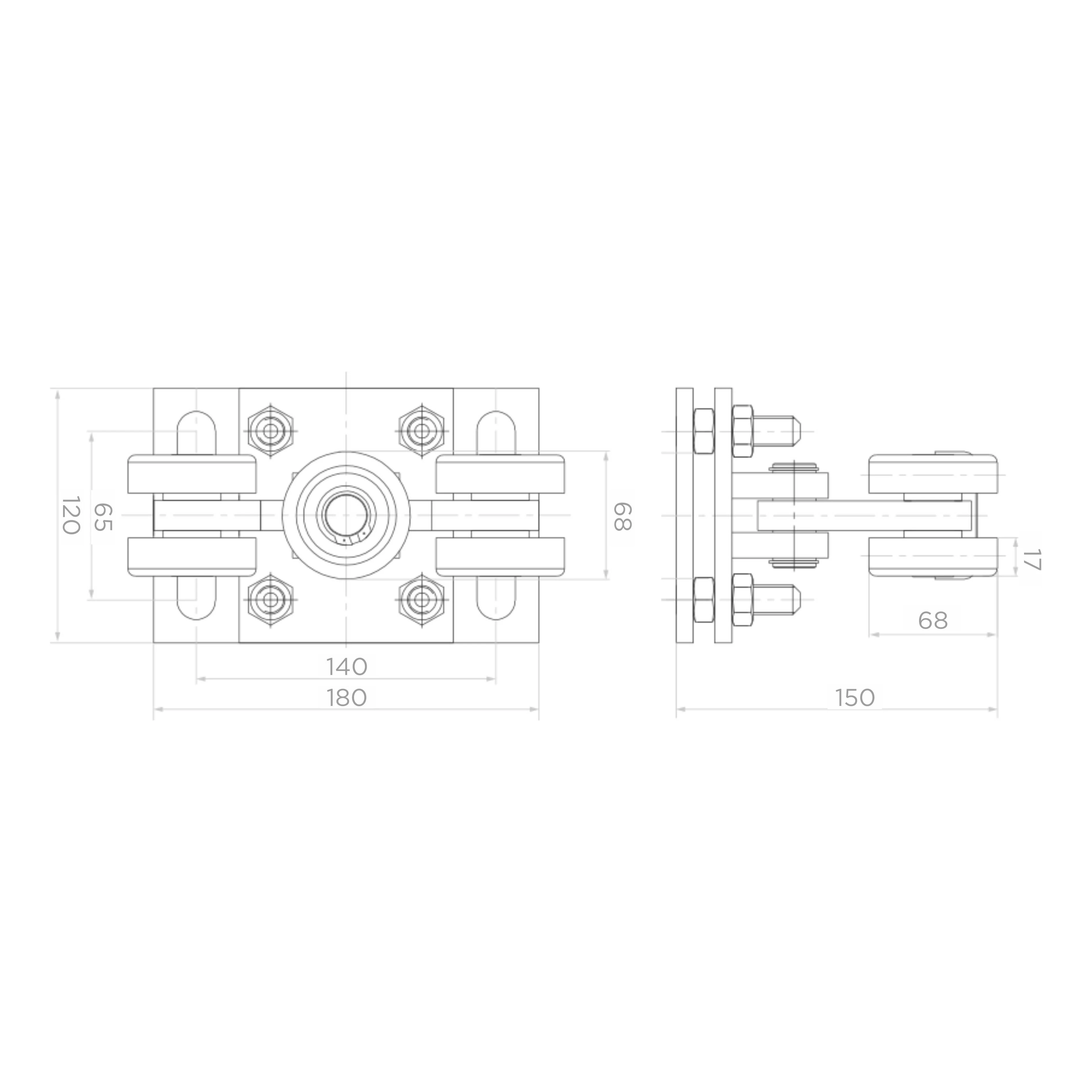 Σετ τροχοφόρων για αυτοφερόμενες συρόμενες πύλες – ράγα 80×80×5 mm