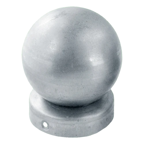 Στρογγυλό στέγαστρο περίφραξης με διακοσμητική μπάλα προορισμένο για τοποθέτηση σε στύλους διαμέτρου φ 60 mm. Κατασκευασμένο από γαλβανισμένο χάλυβα, προστατεύει αποτελεσματικά το πάνω άκρο του στύλου από τις καιρικές συνθήκες και τη διάβρωση, ταυτόχρονα προσδίδοντας στην περίφραξη αισθητικό, επαγγελματικό φινίρισμα. Είναι ένα πρακτικό στοιχείο που συνδυάζει την προστατευτική με τη διακοσμητική λειτουργία — ιδανική λύση για εταιρείες που κατασκευάζουν μεταλλικές και ξύλινες περιφράξεις.