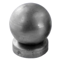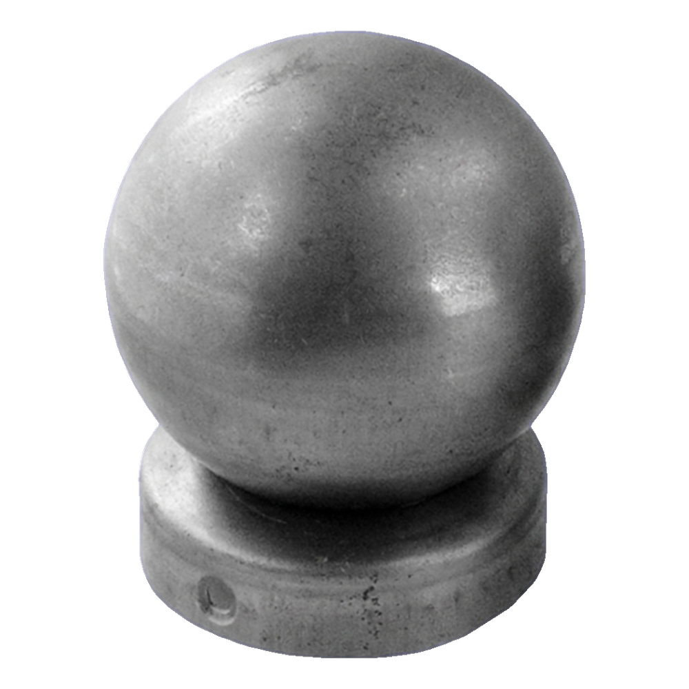 Χαλύβδινο στέγαστρο φράχτη με διακοσμητική σφαίρα προορισμένο για το τελείωμα στύλων διαμέτρου Φ77 mm. Η διακοσμητική σφαίρα διαμέτρου Φ60 mm προσδίδει στον φράχτη αισθητική, επαγγελματική εμφάνιση, ενώ ταυτόχρονα προστατεύει τον στύλο από τη διάβρωση που προκαλείται από τις ατμοσφαιρικές συνθήκες. Το προϊόν παραδίδεται σε ακατέργαστη κατάσταση — για βάψιμο ή γαλβάνισμα με δική σας ευθύνη, κάτι που επιτρέπει την τέλεια προσαρμογή του χρώματος στο υλοποιούμενο έργο.