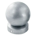Χαλύβδινο στέγαστρο φράχτη με διακοσμητική σφαίρα προορισμένο για τερματισμό στύλων από στρογγυλό σωλήνα διαμέτρου φ48 mm. Η διακοσμητική σφαίρα διαμέτρου φ60 mm προσδίδει στον φράχτη αισθητική, φινιρισμένη εμφάνιση, ενώ ταυτόχρονα προστατεύει αποτελεσματικά το εσωτερικό του σωλήνα από την εισροή βρόχινου νερού, ρύπων και υγρασίας — παρατείνοντας σημαντικά τη διάρκεια ζωής ολόκληρης της κατασκευής φράχτη.