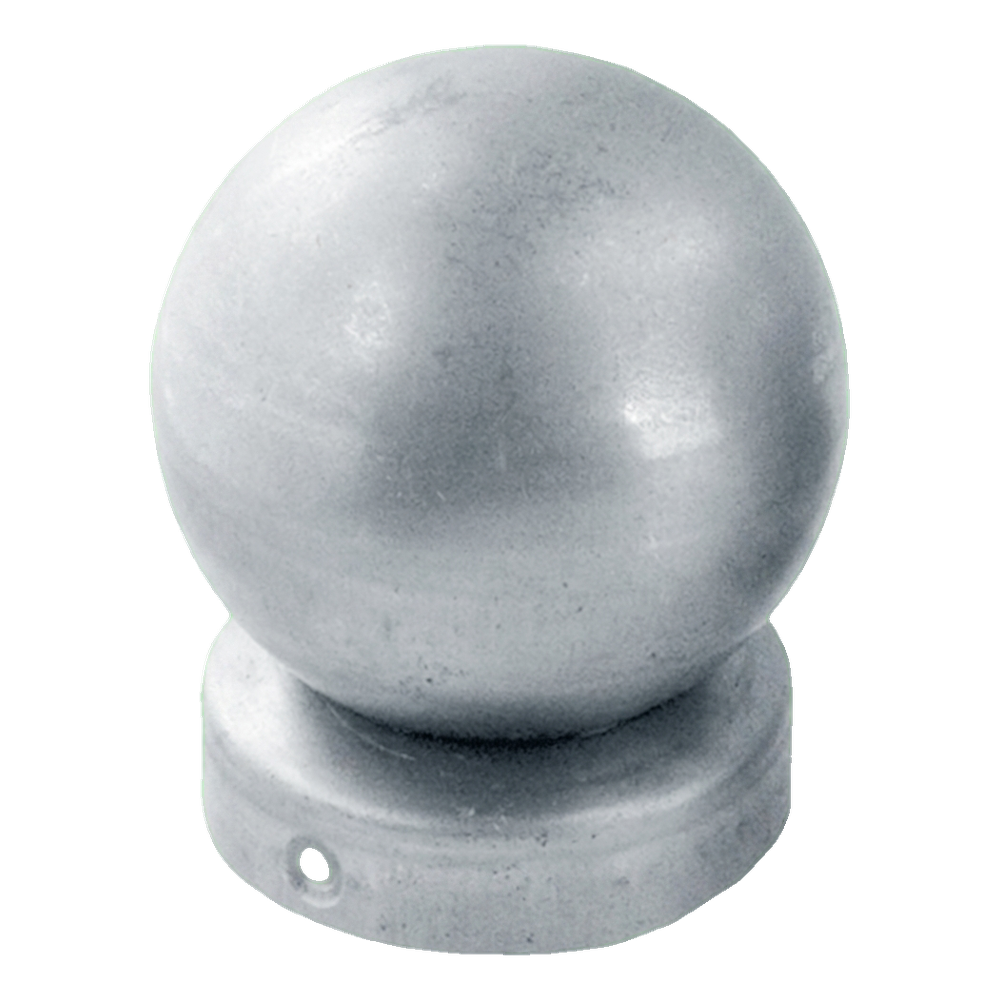 Το στέγαστρο με σφαίρα είναι δημοφιλές φινίρισμα στύλων φράχτη από στρογγυλούς σωλήνες. Εκτός από τη διακοσμητική λειτουργία, διαδραματίζει σημαντικό προστατευτικό ρόλο — προστατεύει τα ανοιχτά άκρα των σωλήνων από τη συσσώρευση νερού, γεγονός που αποτρέπει τη διάβρωση από μέσα και το πάγωμα κατά την περίοδο του χειμώνα. Ιδανική λύση για εταιρείες εγκατάστασης που υλοποιούν μεταλλικούς φράχτες, πορτάκια και πύλες.