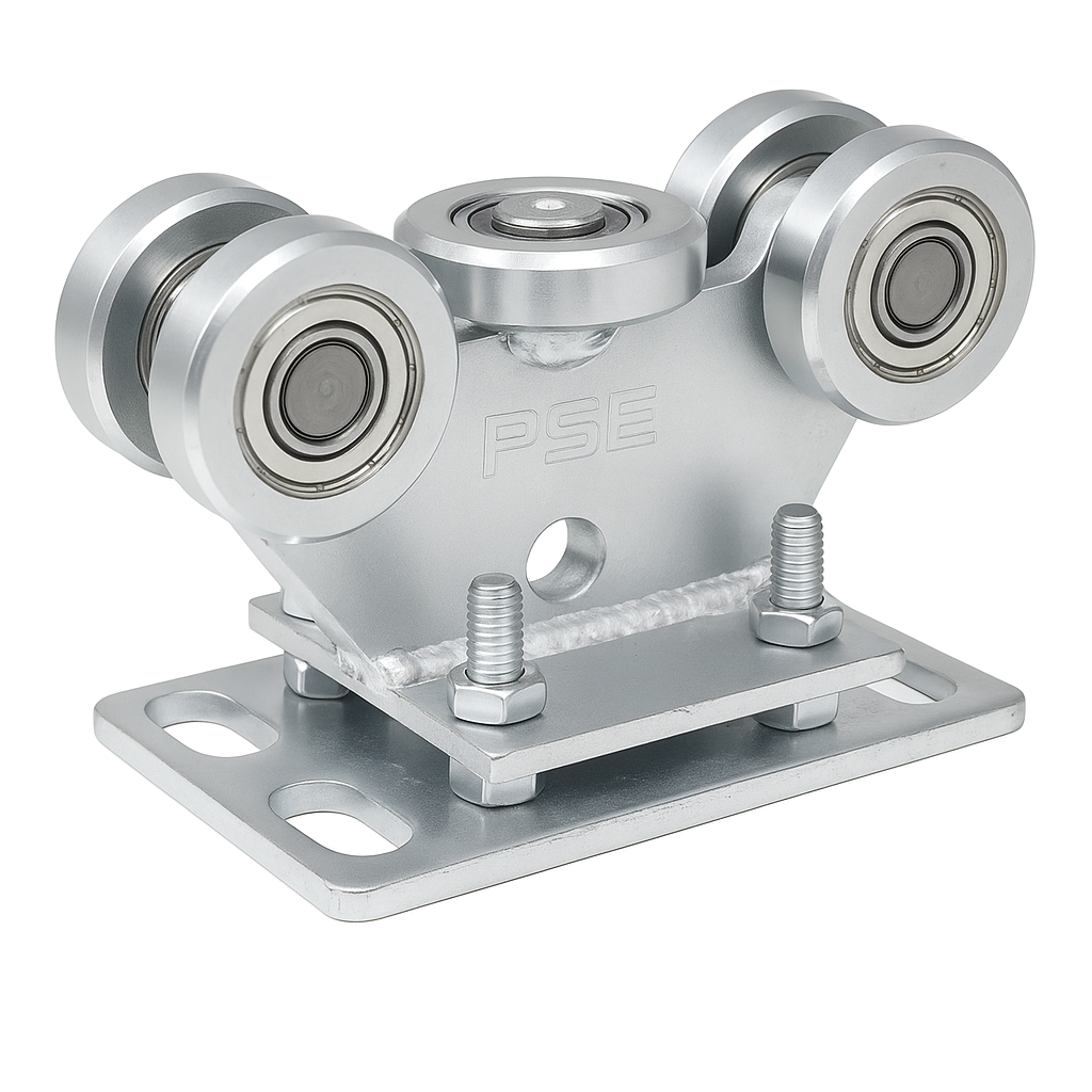 Τροχοφόρο βαγονέτο 5 ρολών προορισμένο για αυτοφερόμενες συρόμενες πύλες, σχεδιασμένο για επαγγελματικές εγκαταστάσεις που απαιτούν φορτίο έως 650 kg. Η κατασκευή βασίζεται σε πέντε ατσάλινα ρολά — συμπεριλαμβανομένου ενός οριζόντιου ρολού — εξασφαλίζοντας σταθερή και ομαλή καθοδήγηση του φύλλου της πύλης ακόμα και υπό μεγάλα φορτία.