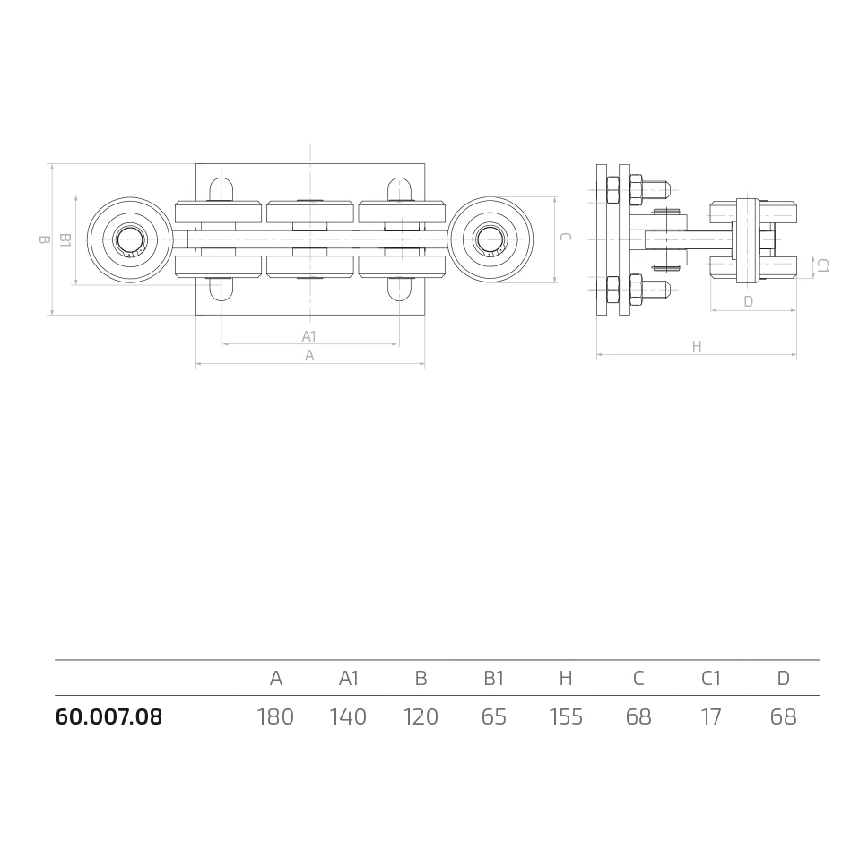 Τροχοφόρο φορείο 80/8 ατσάλινο – 8 τροχοί για συρόμενες πύλες 1000 kg