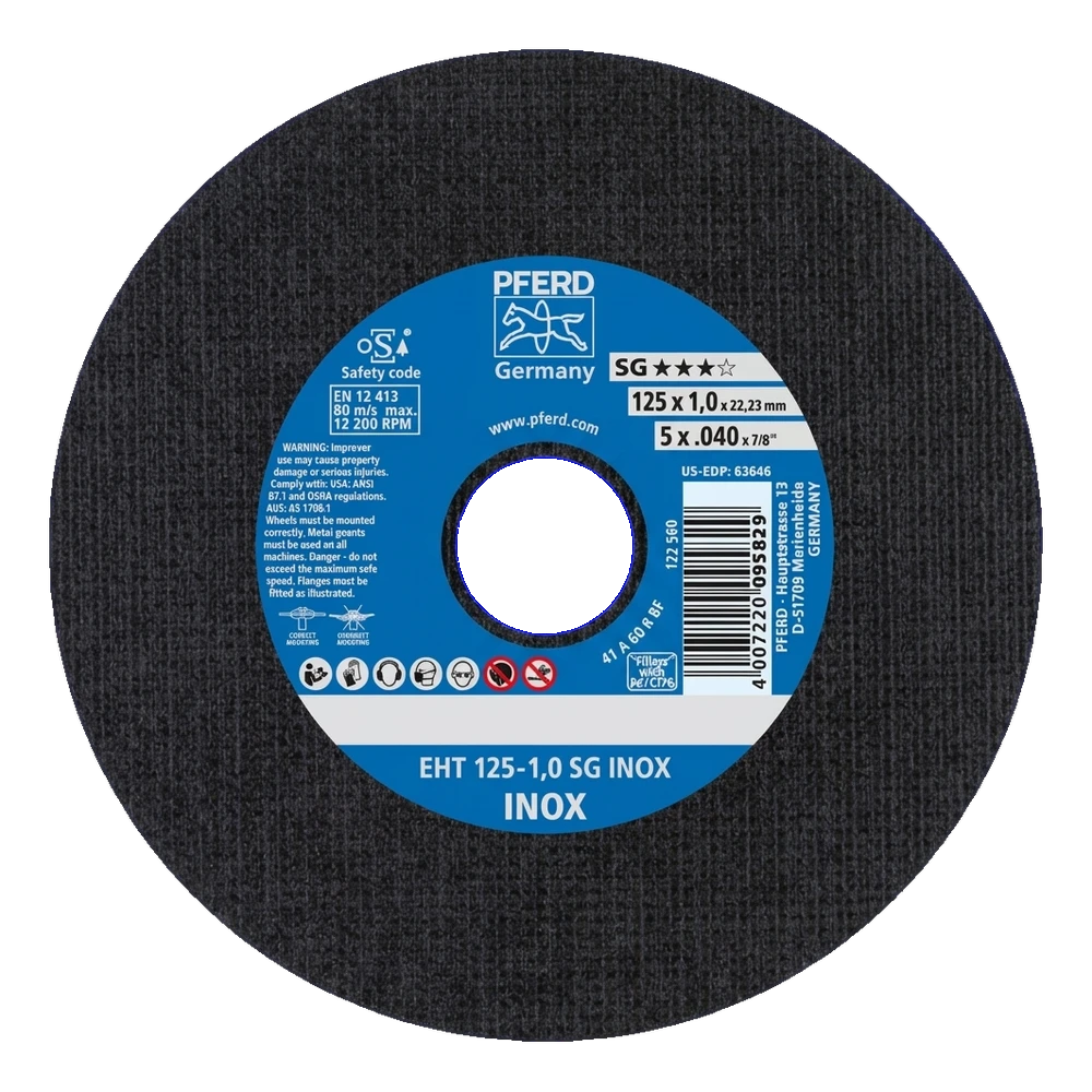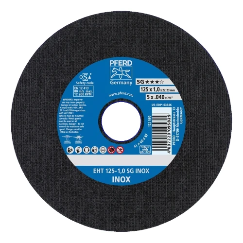PFERD EHT 125-1,0 SG INOX – δίσκος κοπής για χάλυβα και ανοξείδωτο χάλυβα 125 × 1,0 mm