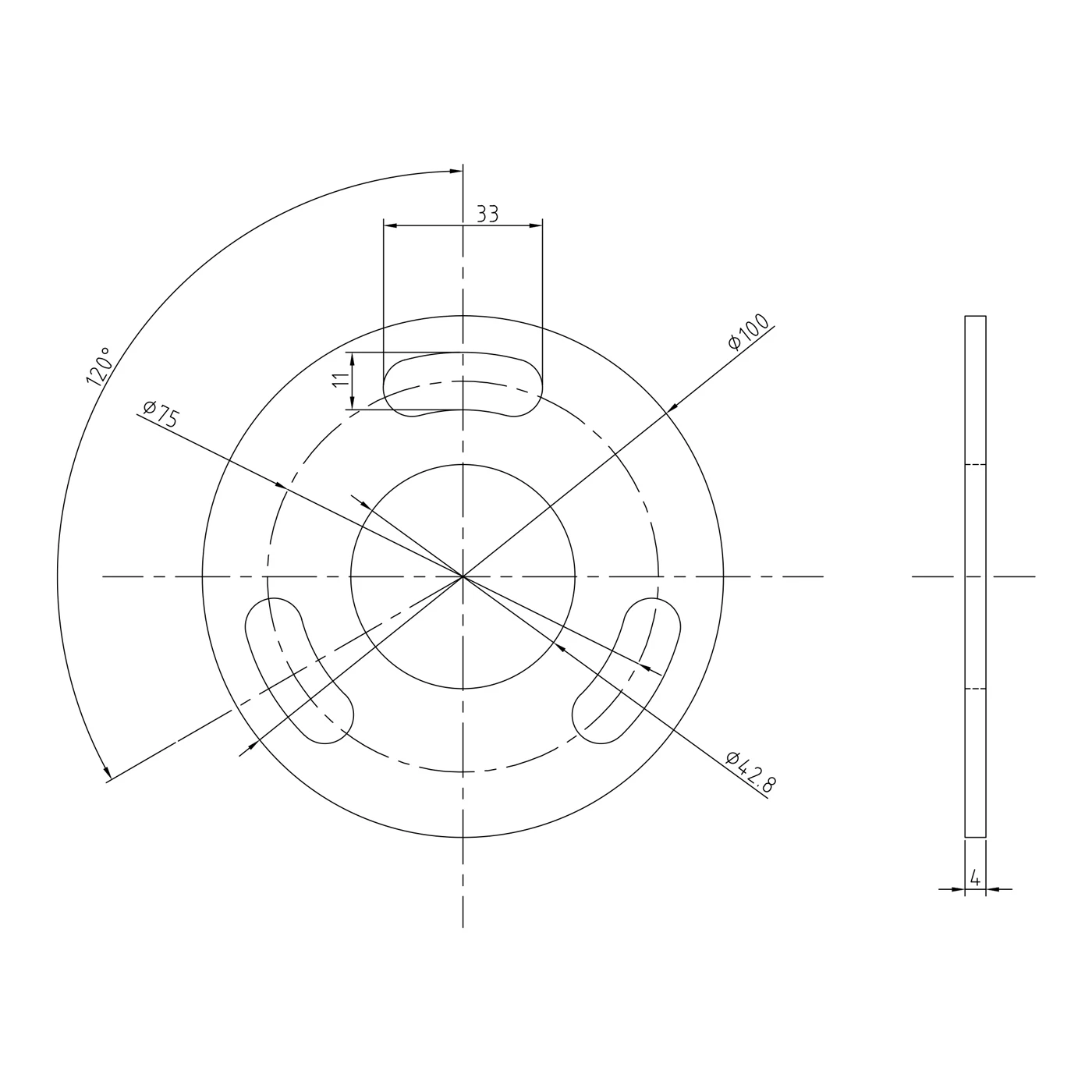- Γωνία διαστήματος μεταξύ τρυπών: 120° (3 τρύπες στερέωσης)