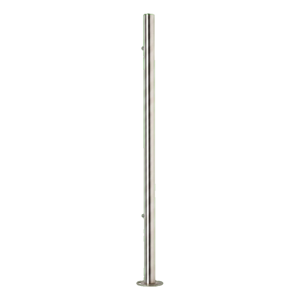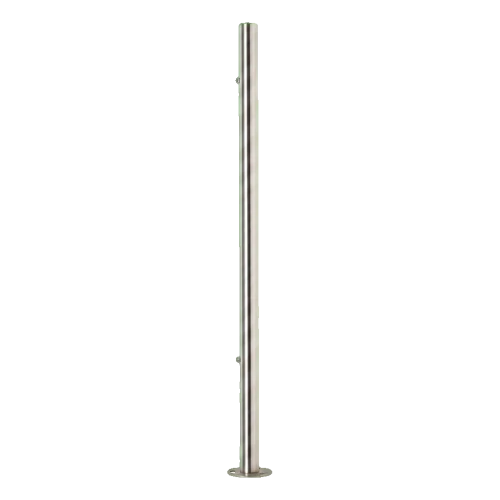 Το τελικό κολωνάκι παίζει κρίσιμο ρόλο στη σταθεροποίηση και το αισθητικό κλείσιμο της κατασκευής κιγκλιδώματος. Η συγκολλημένη βάση διαμέτρου ø100 mm εξασφαλίζει ασφαλή στερέωση στο δάπεδο, εγγυώμενη διάρκεια και ασφάλεια όλης της εγκατάστασης. Το σατινέ φινίρισμα προσδίδει στον μοντέρνο χώρο κομψό χαρακτήρα και συνδυάζεται τέλεια με διάφορα αρχιτεκτονικά στυλ — τόσο σε οικιστικά όσο και σε εμπορικά κτίρια.
