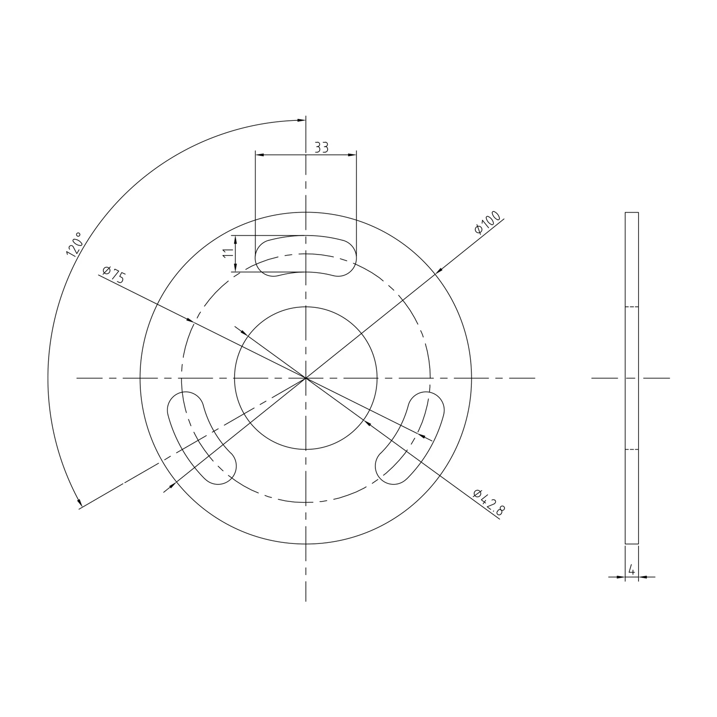 - Οπές στερέωσης: 3 στενομακρυνές διατεταγμένες κάθε 120°