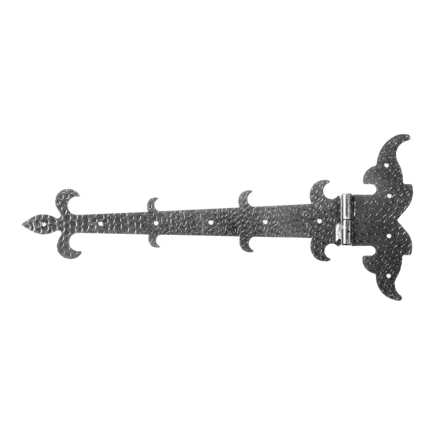 Η κατασκευή από χάλυβα εξασφαλίζει υψηλή μηχανική αντοχή και ανθεκτικότητα. Τα διακοσμητικά στοιχεία — το μοτίβο κρίνου στο άκρο του βραχίονα και οι διακοσμητικές καμπύλες — καθιστούν αυτόν τον μεντεσέ εξαιρετική επιλογή για πύλες και πόρτες κήπου σε αγροτικό, εξοχικό ή ιστορικό στυλ.