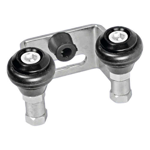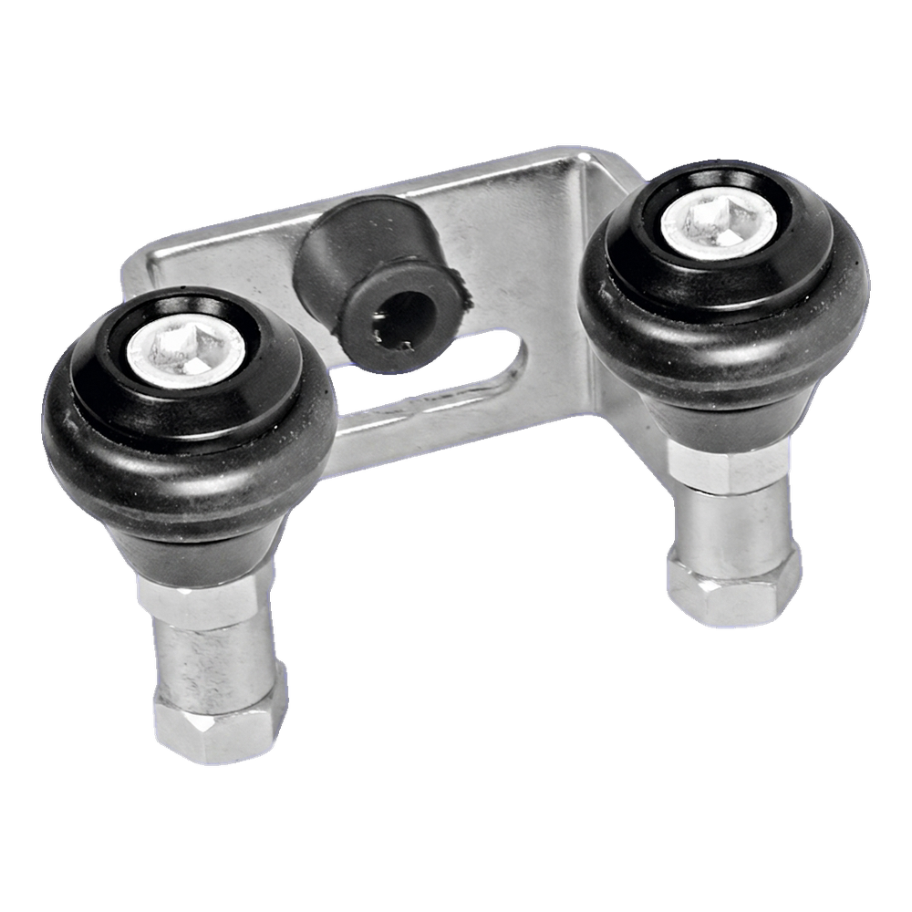 Χαλύβδινη άνω βάση συρόμενης πύλης με λαστιχένιους οδηγούς τροχούς και κεντρική λαστιχένια ανάσχεση. Στοιχείο προορισμένο για συρόμενες πύλες αυτοφερόμενες και ολισθαίνουσες — σταθεροποιεί το φύλλο της πύλης μετά το κλείσιμο, εξαλείφοντας τις πλευρικές κινήσεις και εξασφαλίζοντας αθόρυβη, ομαλή λειτουργία. Οι λαστιχένιοι τροχοί αποτελεσματικά απορροφούν το θόρυβο κατά τη μετακίνηση της πύλης, ενώ η επιπλέον ανάσχεση αμορτίζει το χτύπημα του φύλλου στην τελική θέση. Προϊόν γαλβανισμένο, που εγγυάται υψηλή αντίσταση στη διάβρωση και πολυετή αντοχή σε εξωτερικές συνθήκες.