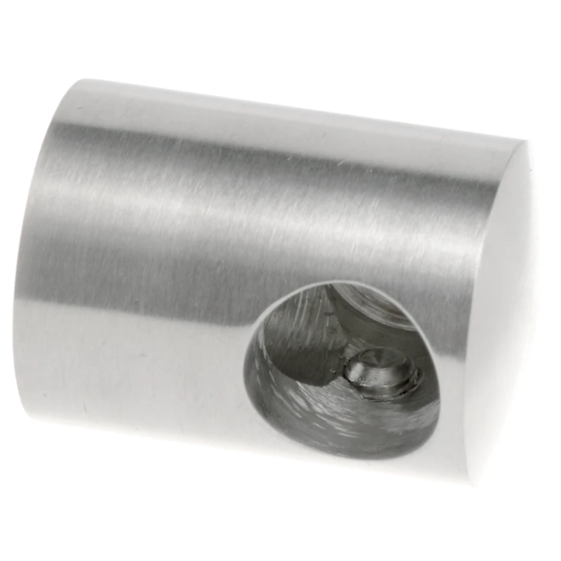 Λαβή προορισμένη για τοποθέτηση γεμισμάτων ράβδων σε κιγκλιδώματα από ανοξείδωτο ατσάλι — τόσο εσωτερικά όσο και εξωτερικά. Χρησιμοποιείται ως στοιχείο εκκίνησης ή τερματισμού σε σειρά οριζόντιων ράβδων που στερεώνονται μεταξύ στύλων κιγκλιδώματος. Χάρη στην συμπαγή κυλινδρική κατασκευή και το σατινέ φινίρισμα συνδυάζεται διακριτικά με τα υπόλοιπα στοιχεία του συστήματος κιγκλιδώματος.