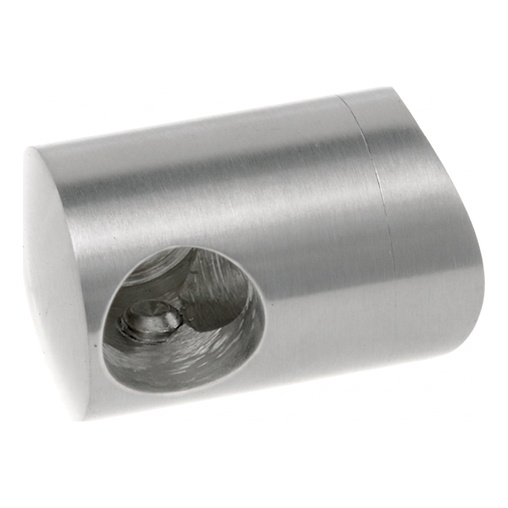 Λαβή τερματισμού δεξιά για ράβδο φ12 mm, προορισμένη για στήριξη σε σωλήνα διαμέτρου 42,4 mm. Στοιχείο κατασκευασμένο από ανοξείδωτο χάλυβα AISI 304 με γυαλιστερό φινίρισμα (γυαλιστερό) — ιδανικό για αισθητικές ανοξείδωτες κουπαστές σε οικιστική και εμπορική οικοδομή.