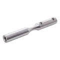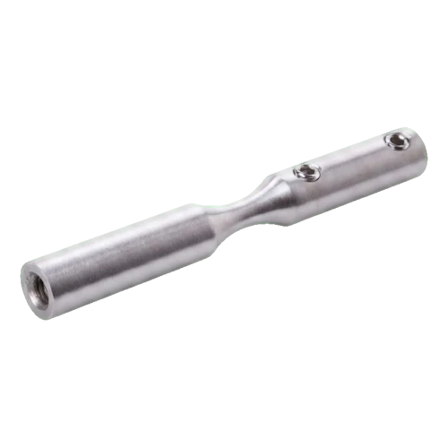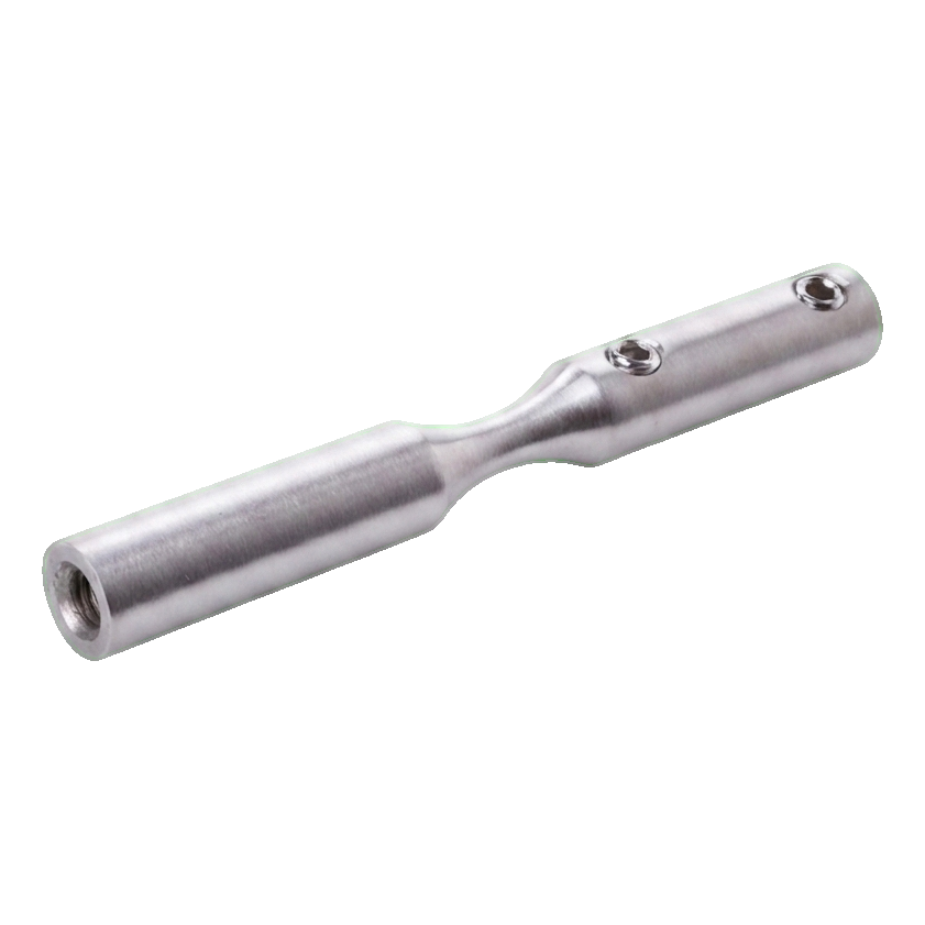 Το στοιχείο κατασκευασμένο από ανοξείδωτο χάλυβα AISI 304 με φινίρισμα σατινέ εξασφαλίζει υψηλή αντοχή στη διάβρωση και αισθητικά στονισμένη εμφάνιση. Η τοποθέτηση γίνεται με βίδωμα — η βάση είναι εξοπλισμένη με σπειρώματα M6 και οπές μπλοκαρίσματος (Ø6 mm), γεγονός που εγγυάται σταθερή και ανθεκτική σύνδεση με το συρματόσχοινο και τη φέρουσα κατασκευή.