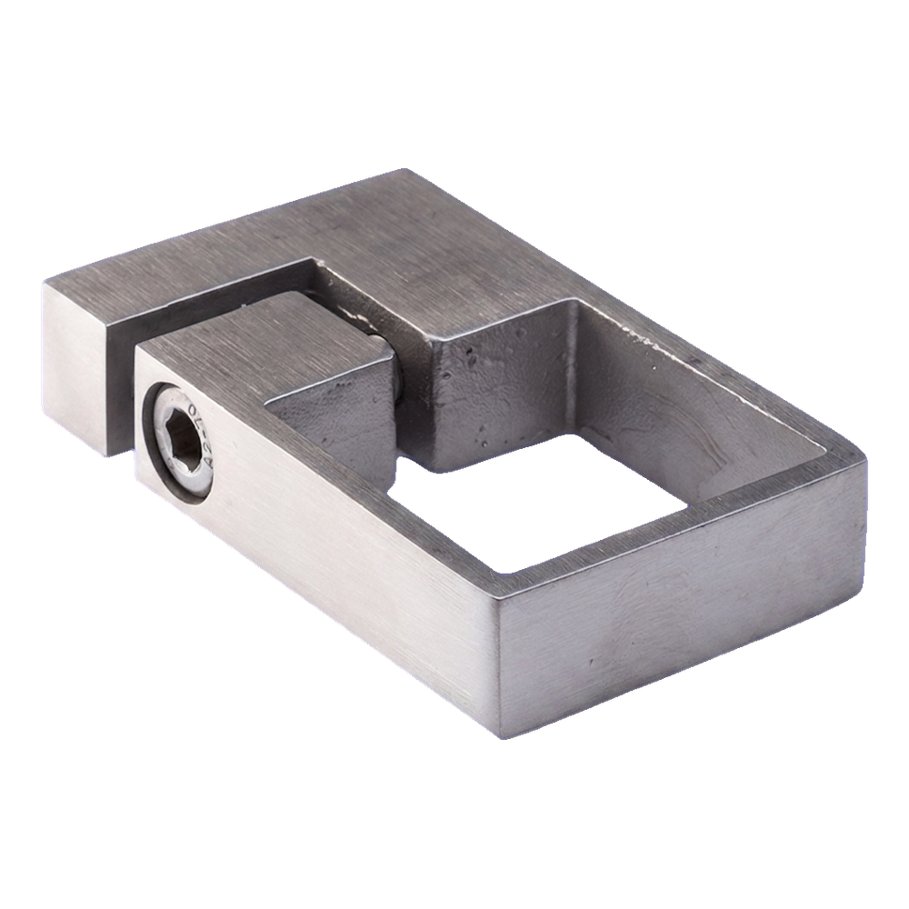 Σφιγκτήρα στήριξης για πλευρική στερέωση στύλου κιγκλιδώματος με προφίλ 40×40 mm. Στοιχείο προορισμένο για εγκατάσταση σε τοίχο, πλευρό σκάλας ή άλλη κατακόρυφη επιφάνεια — εξασφαλίζει σταθερή στήριξη στύλου κιγκλιδώματος μπαλκονιού, βεράντας ή σκάλας. Κατασκευασμένη από ανοξείδωτο χάλυβα AISI 304 σε σατινέ φινίρισμα, γεγονός που εγγυάται υψηλή αντίσταση στη διάβρωση και αισθητική, σύγχρονη εμφάνιση.