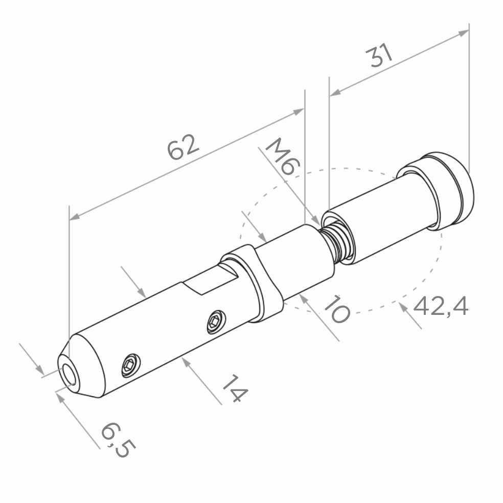 Ο συνδετήρας προορίζεται για βίδωμα, όχι για συγκόλληση — ο εγκαταστάτης δεν χρειάζεται συγκολλητική συσκευή ούτε πρόσθετη επεξεργασία μετά την τοποθέτηση. Αυτή η λύση είναι ιδιαίτερα επωφελής κατά την υλοποίηση συστημικών κιγκλιδωμάτων, όπου έχουν σημασία η επαναληψιμότητα και ο ρυθμός εργασίας. Η προφιλαρισμένη βάση προσαρμόζεται ιδανικά στον σωλήνα Ø 42,4 mm, ενώ σε περίπτωση τοποθέτησης σε τοίχο ή άλλη επίπεδη επιφάνεια το στοιχείο λειτουργεί ως σημείο εκκίνησης αγκύρωσης του συρματόσχοινου.