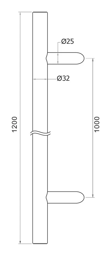 PSG χειρολαβή πόρτας μονόπλευρη στρογγυλή μαύρη 32×1200 mm AISI 304 – στερέωση 45°