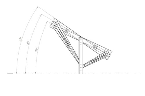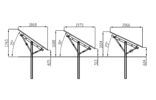 - Ευελιξία: Δυνατότητα επιλογής γωνίας κλίσης (25°, 30° ή 35°) κατά την εγκατάσταση - μπορείτε έτσι να εξισορροπήσετε ελαφριές διαφοροποιήσεις εδάφους και να προσαρμόσετε τη γωνία στο γεωγραφικό πλάτος σας